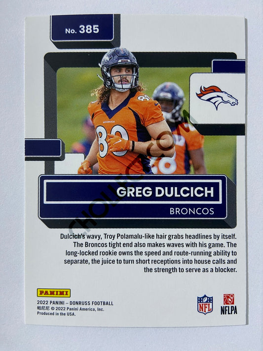 Greg Dulcich - Denver Broncos 2022 Panini Donruss Rated Rookie #385