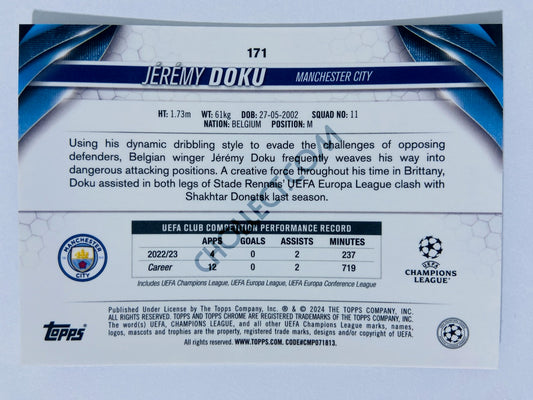Jeremy Doku - Manchester City 2023-24 Topps Chrome UEFA Club Competitions #171