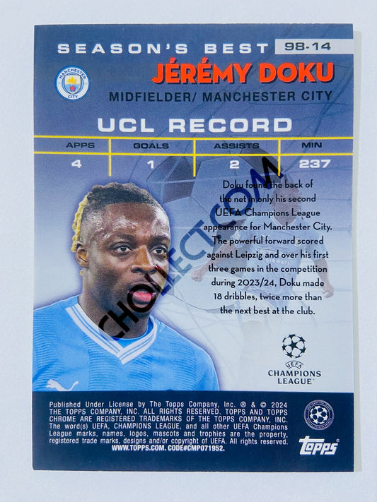 Jeremy Doku - Manchester City 2023-24 Topps Chrome UEFA Club Competitions Shooting Stars #98-14