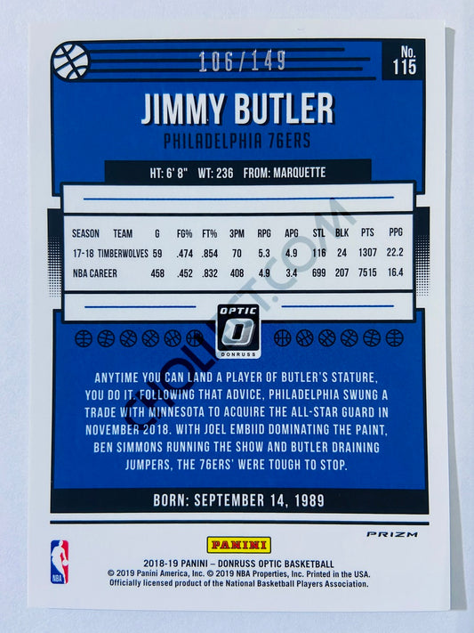 Jimmy Butler - Philadelphia 76ers 2018-19 Panini Donruss Optic Lime Green Parallel #115 | 106/149
