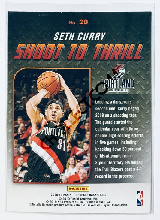 Seth Curry - Portland Trail Blazers 2018-19 Panini Threads Shoot To Thrill Insert Dazzle Parallel #20