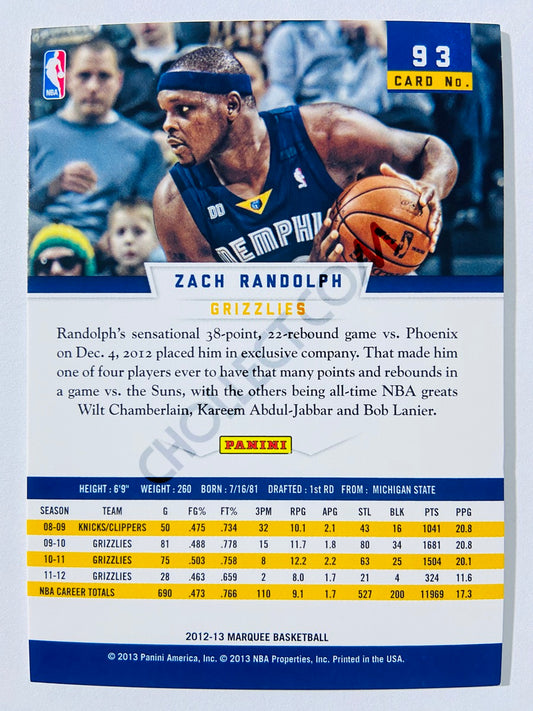Zach Randolph – Memphis Grizzlies 2012-13 Panini Marquee #93