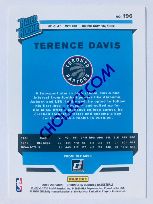 Terence Davis - Toronto Raptors 2019-20 Panini Chronicles Donruss Rated Rookie #196