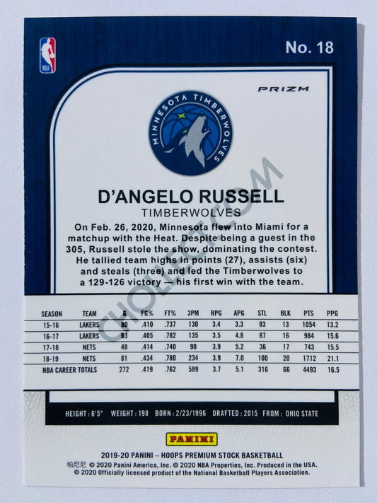 D'Angelo Russell - Minnesota Timberwolves 2019-20 Panini Hoops Premium Stock Laser Silver Parallel #18