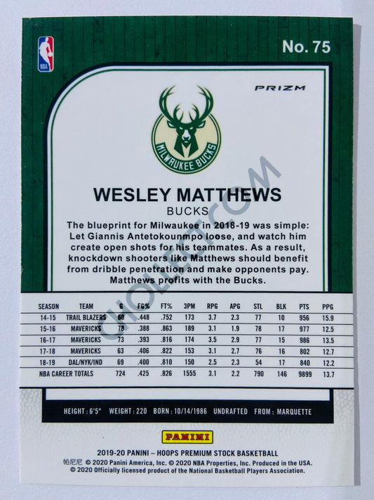 Wesley Matthews - Milwaukee Bucks 2019-20 Panini Hoops Premium Stock Laser Silver Parallel #75