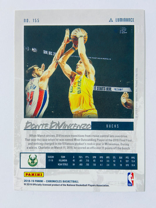 Donte DiVincenzo - Milwaukee Bucks 2018-19 Panini Chronicles Luminance Green Parallel RC Rookie #155