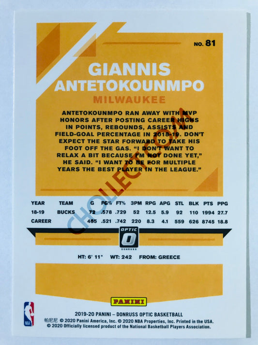 Giannis Antetokounmpo - Milwaukee Bucks 2019-20 Panini Donruss Optic #81