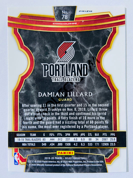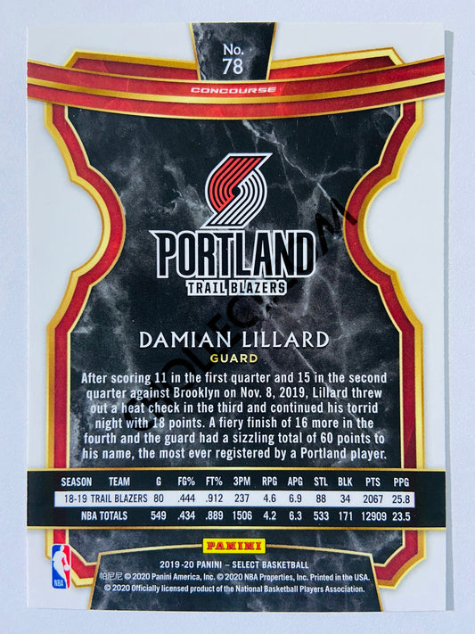Damian Lillard - Portland Trail Blazers 2019-20 Panini Select Concourse Silver Parallel #78