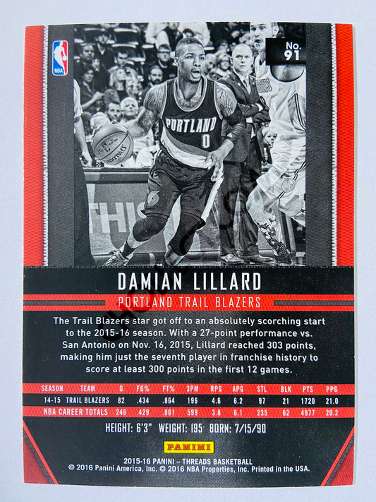 Damian Lillard - Portland Trail Blazers 2015-16 Panini Threads #91