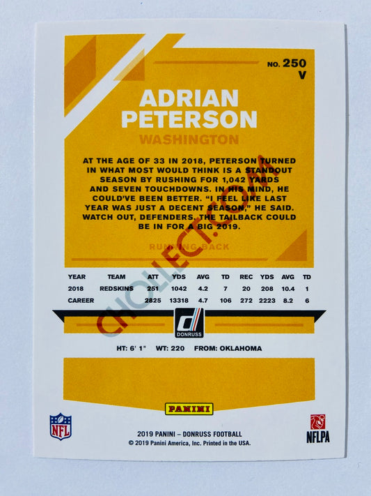 Adrian Peterson – Washington Commanders 2019-20 Panini Donruss Blue Press Proof Parallel Variation #250