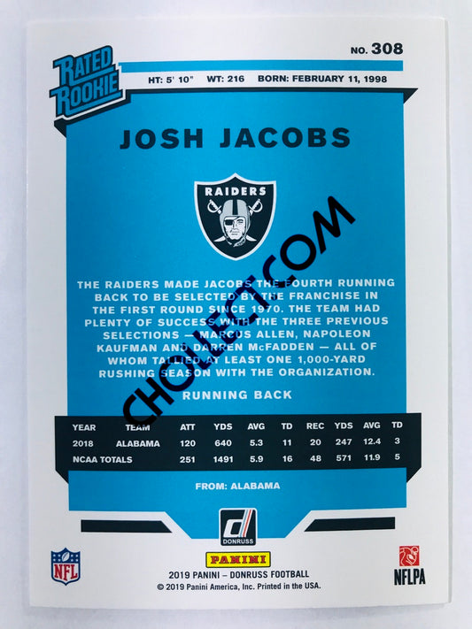 Josh Jacobs - Oakland Raiders 2019-20 Panini Donruss Rated Rookie #308