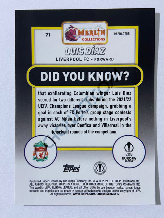 Luis Diaz - Liverpool FC 2023-24 Topps Merlin Refractor #71