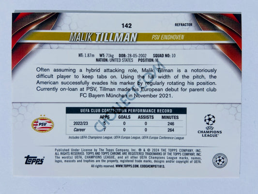 Malik Tillman - PSV Eindhoven 2023-24 Topps Chrome UEFA Club Competitions Refractor #142