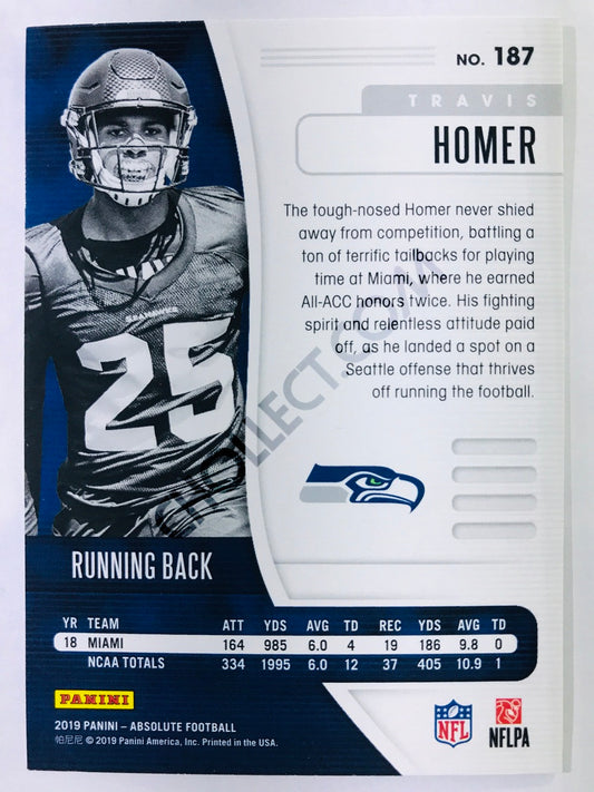 Travis Homer - Seattle Seahawks 2019-20 Panini Absolute RC Rookie #187