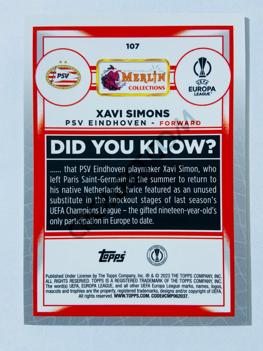 Xavi Simons - PSV Eindhoven 2022-23 Topps Merlin Chrome UEFA Club Competitions #107