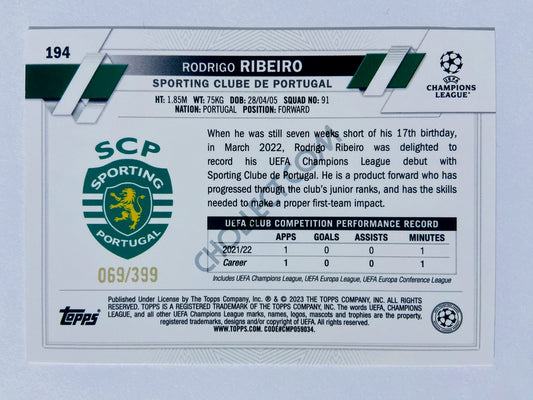 Rodrigo Ribeiro - Sporting Clube de Portugal 2022-23 Topps UEFA Club Competitions RC Rookie #194