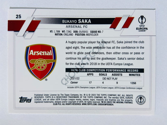 Bukayo Saka - Arsenal FC 2022-23 Topps UEFA Club Competitions #25