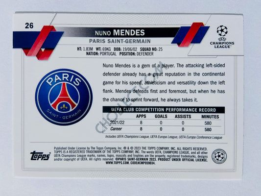 Nuno Mendes - Paris Saint-Germain 2022-23 Topps UEFA Club Competitions Future Stars #26